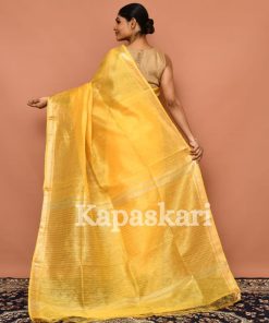 Handwoven silk Linen saree.
