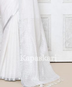 Nazreen white Handwoven Pure Linen Saree.