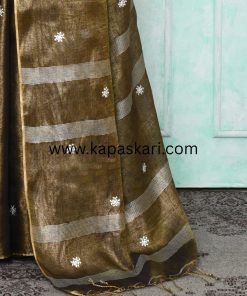 Metallic Zari Linen with Embroidery work Saree .