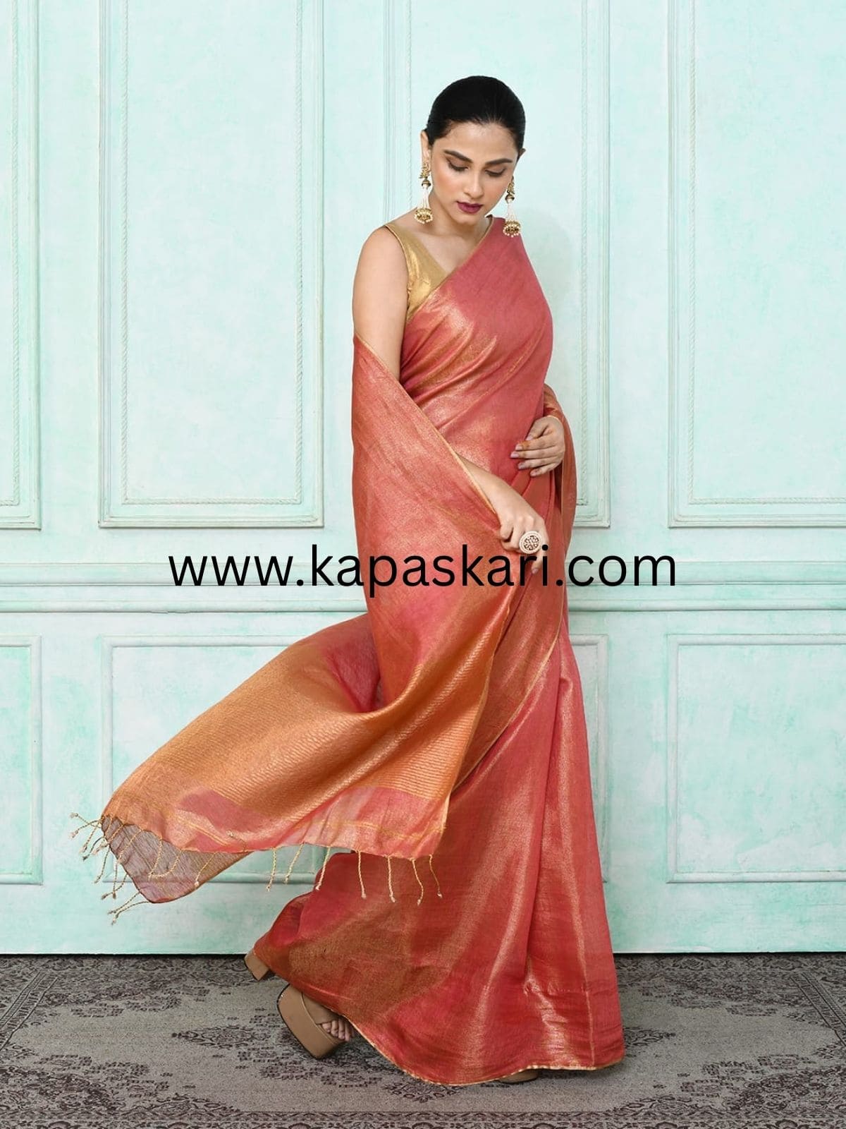 Handloom Metallic Zari Linen Saree .