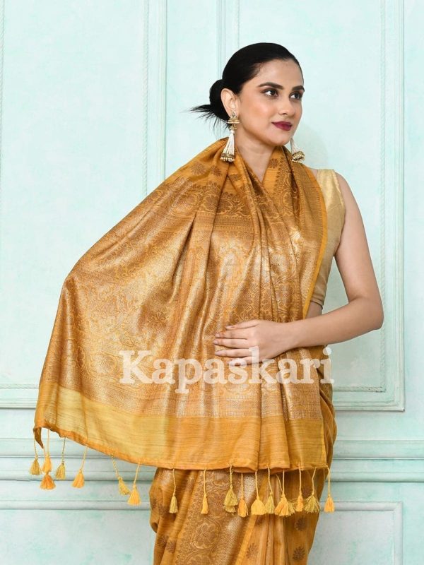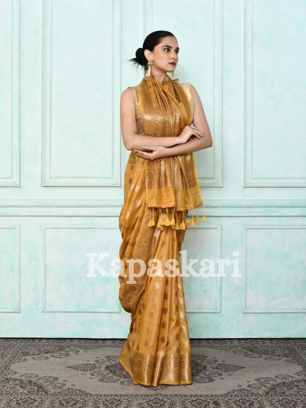 Handloom Metallic Zari Linen Saree .